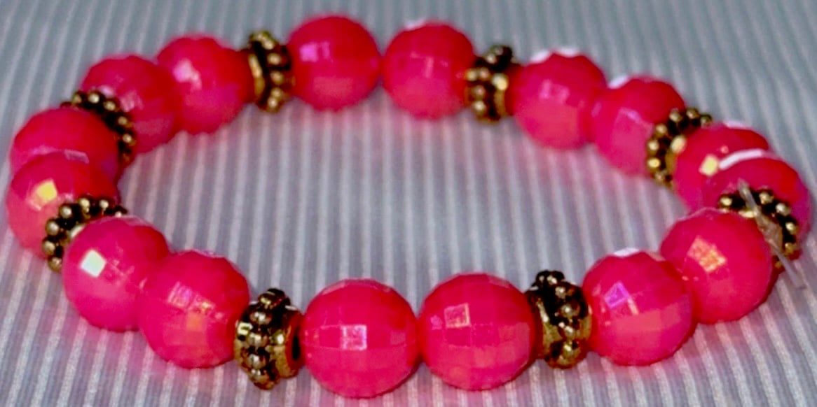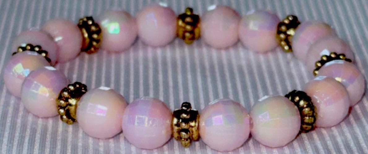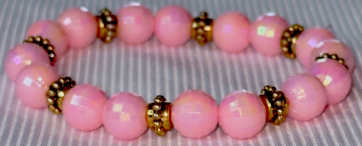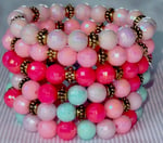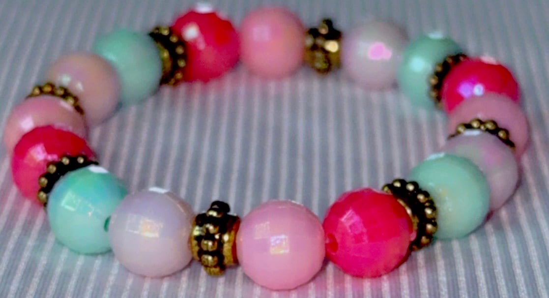 Sweet, soft, and glowing this pastel beauty mixes pink, mint, and coral beads with golden accents for a dreamy, playful touch. Lightweight, stretchy, and perfect for any look!