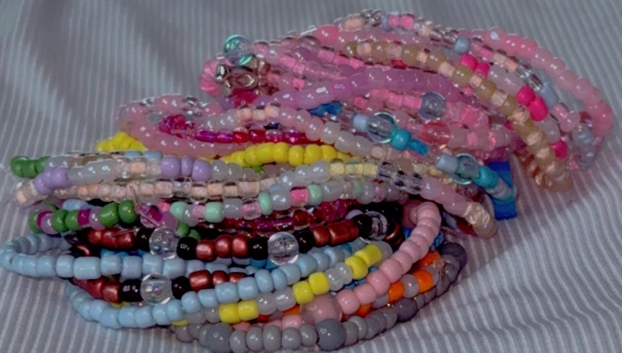 A playful fusion of colors and bead patterns, this bracelet is full of character and charm. Each bead tells a story—bold, soft, shiny, and matte—all coming together in one joyful, eye-catching piece. No two are the same, just like you!