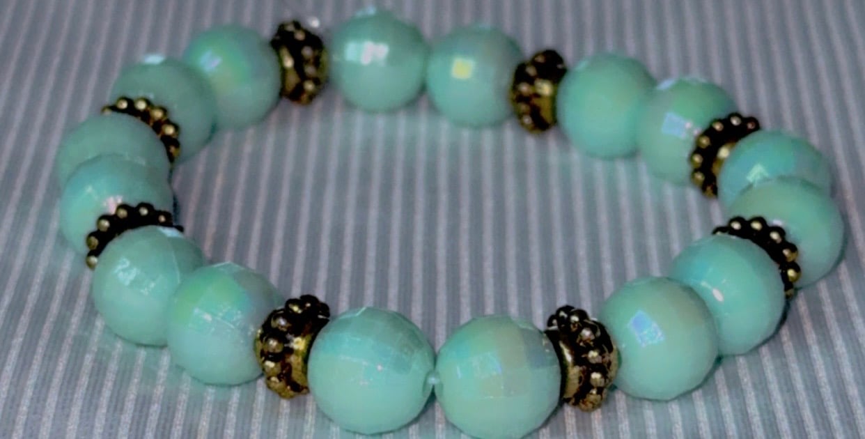 Cool, calm, and elegant Mint Bliss features soft green beads with a shimmering finish and antique gold accents. A refreshing touch for your everyday style.
